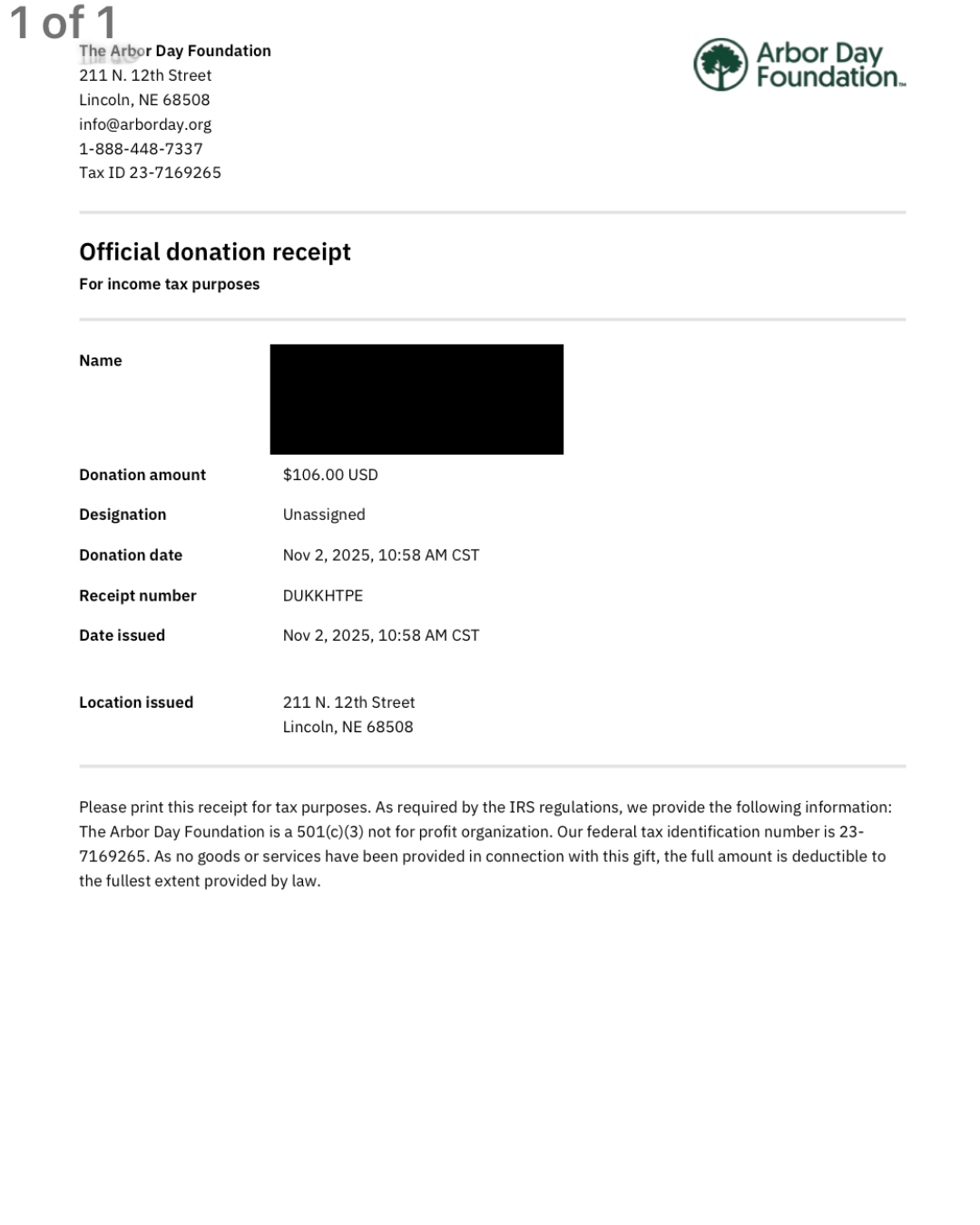 These order receipts were first started in October 2025, and we will continue adding every donation from this point onward.