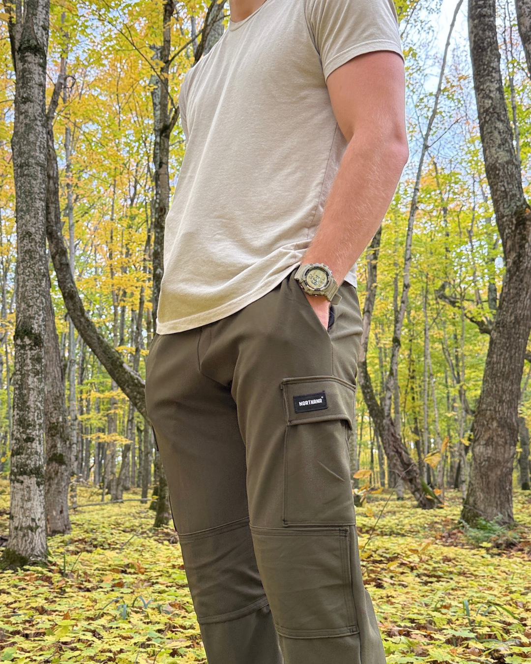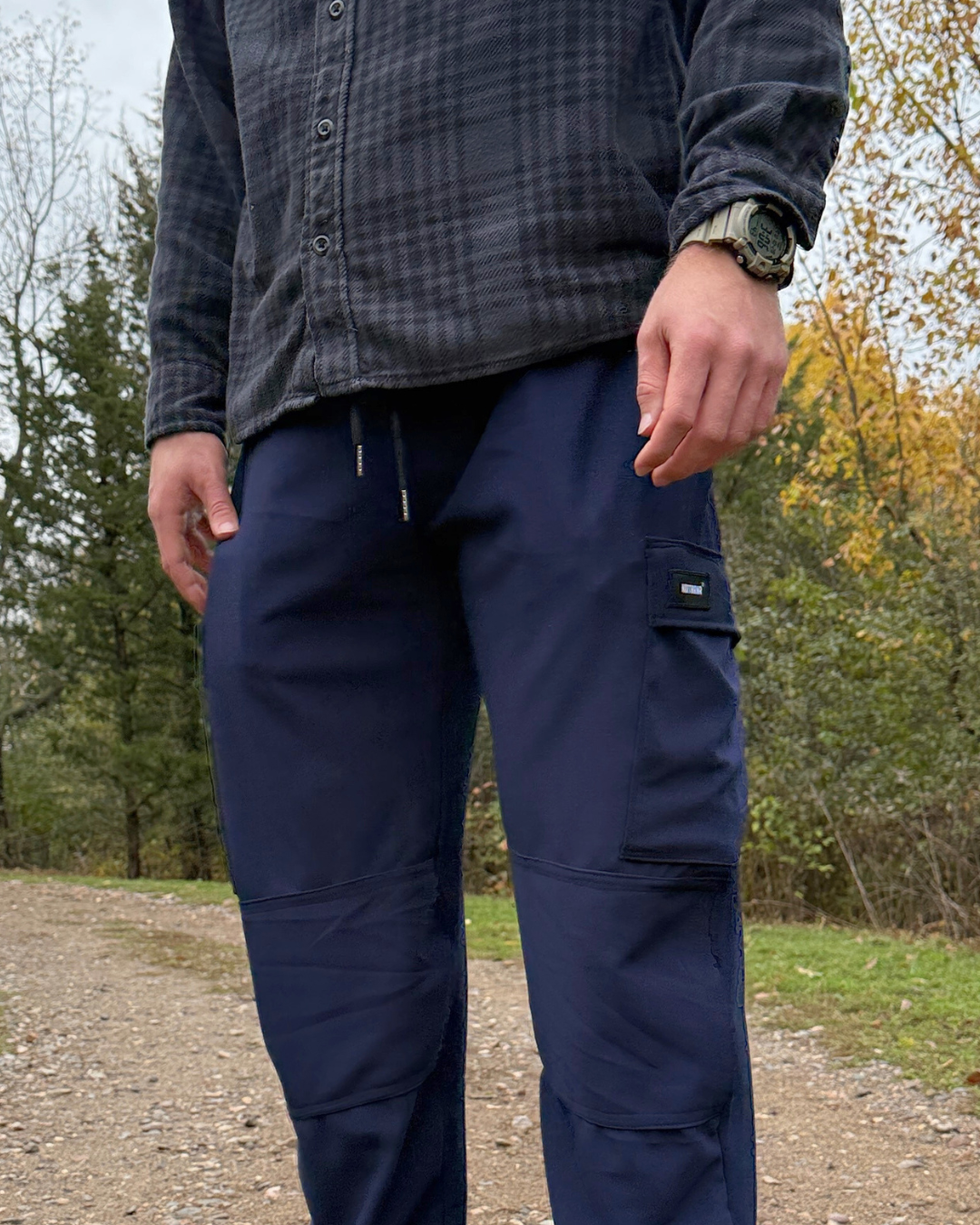 Designed with five functional pockets, cuffed bottoms, and reinforced double-layer fabric at the knee for durability. The elastic waistband adds comfort and flexibility, while strong, high-quality sewing threads ensure lasting strength.